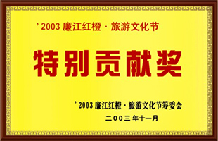 -榮獲2003年廉江紅橙旅游文化節(jié)特別貢獻(xiàn)獎(jiǎng)。