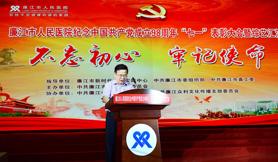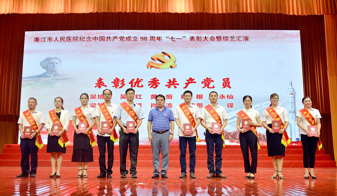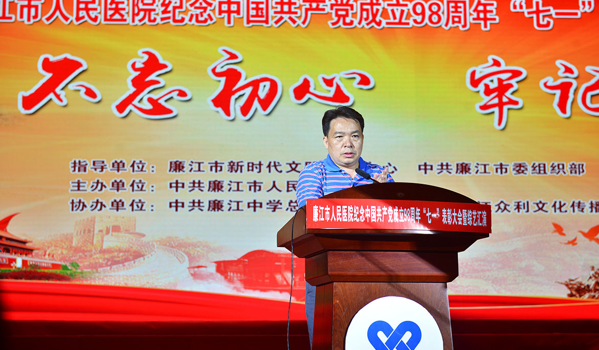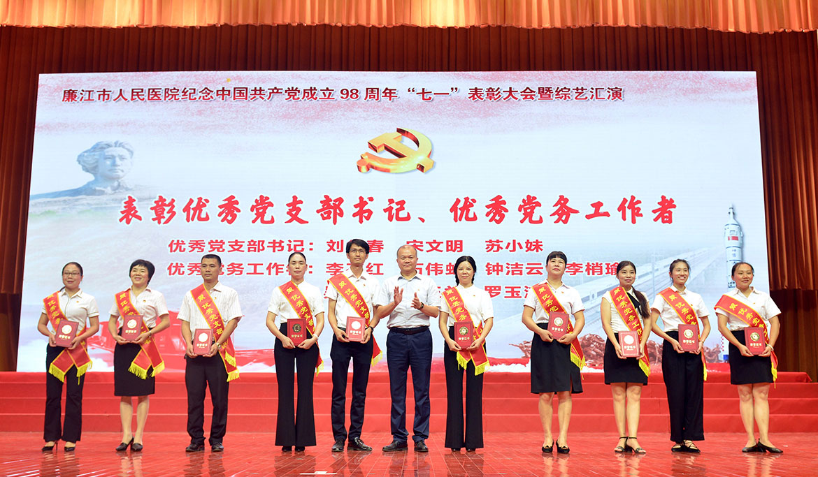 6月28日晚,人民醫(yī)院在廉江劇院舉辦“不忘初心,牢記使命”紀(jì)念中國(guó)共產(chǎn)黨成立98周年“七一”表彰大會(huì)暨綜藝匯演晚會(huì)。市人大常委會(huì)主任、黨組書記李世東,市委常委、市政府黨組成員木聲隆,市人大常委會(huì)黨組副書記、常務(wù)副主任、市總工會(huì)主席李玲,市政協(xié)副主席、黨組成員陳亞德,市政協(xié)副主席林炳坤,市政協(xié)副主席王麗峰等領(lǐng)導(dǎo)應(yīng)邀參加觀看演出和頒獎(jiǎng)活動(dòng),市婦聯(lián)、團(tuán)市委、人社局、衛(wèi)健局、醫(yī)保局、交通局、檢察院、法院、財(cái)政局、廉江中學(xué)、廉江衛(wèi)校等單位領(lǐng)導(dǎo)應(yīng)邀參加觀看演出。