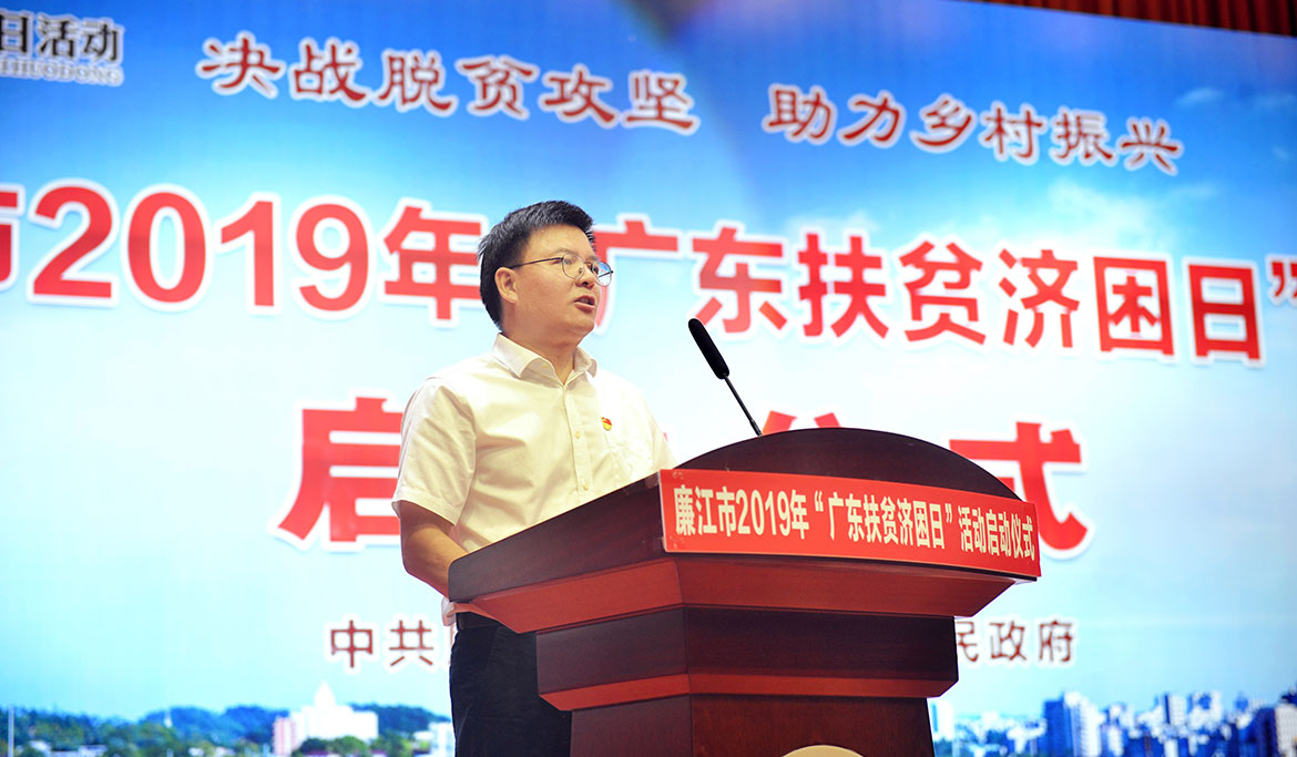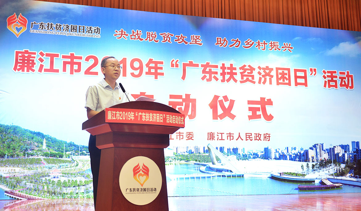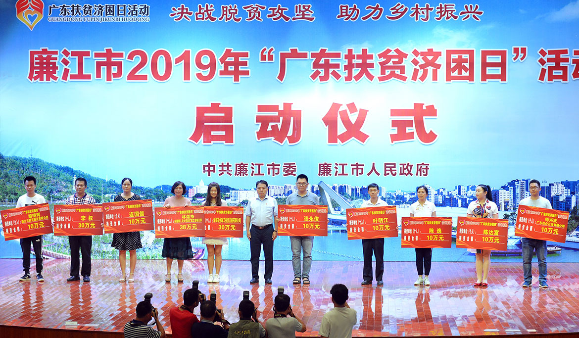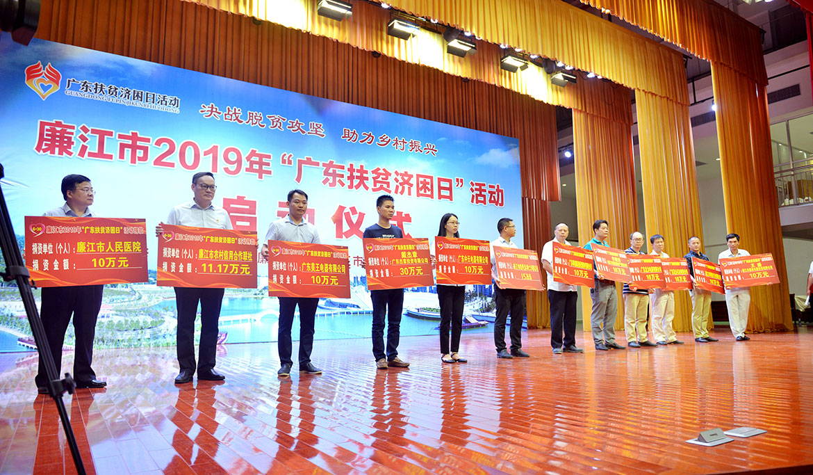 6月30日上午,我市在廉江劇院舉行廉江市2019年“廣東扶貧濟(jì)困日”活動(dòng)啟動(dòng)儀式,動(dòng)員全市上下統(tǒng)一思想、鼓舞斗志,舉全市之力盡銳出戰(zhàn)、攻堅(jiān)克難、決戰(zhàn)決勝,確保圓滿完成“2019年底95%以上相對貧困人口達(dá)到脫貧標(biāo)準(zhǔn)、90%以上相對貧困村達(dá)到出列標(biāo)準(zhǔn)”的目標(biāo)任務(wù);表彰獲得廉江市2018年度“廣東扶貧濟(jì)困日”活動(dòng)先進(jìn)單位和先進(jìn)個(gè)人,當(dāng)天同時(shí)收到捐款3737.86萬元。