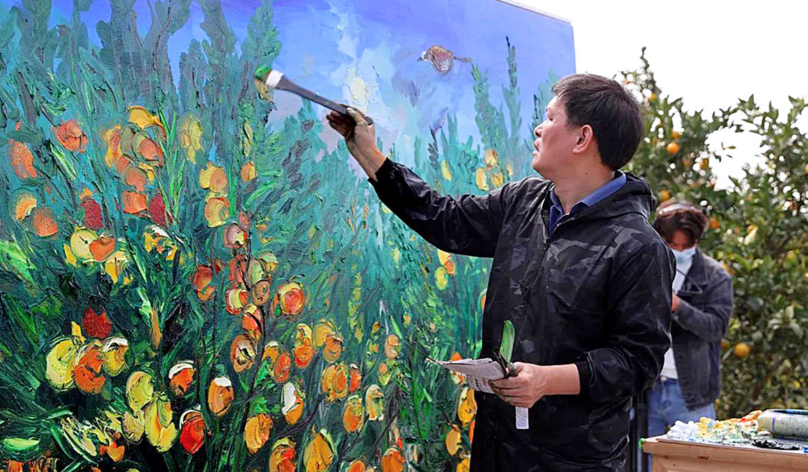 “重彩繪橙園 文化興鄉(xiāng)村”周昌新重彩油畫廉江紅橙現(xiàn)場創(chuàng)作全球直播活動由眾利公司策劃執(zhí)行