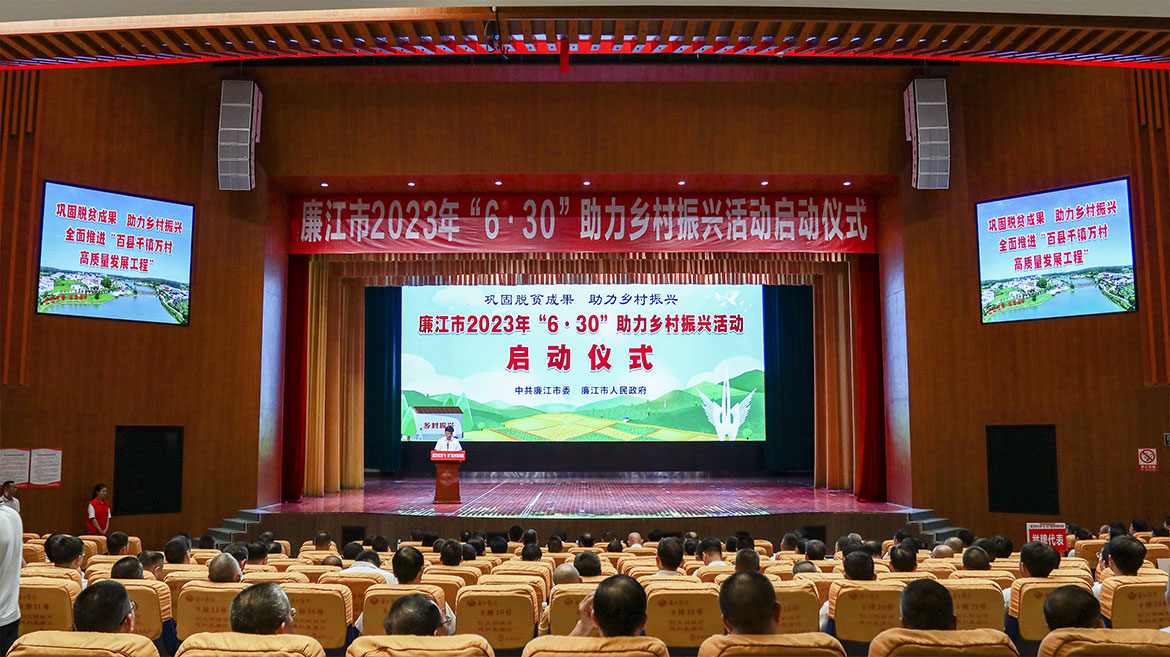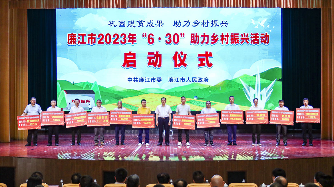 6月30日,廉江市委、市政府在廉江劇院舉辦2023年“6·30”助力鄉(xiāng)村振興活動啟動儀式,凝聚社會各界合力,廣泛動員社會組織、愛心企業(yè)、愛心人士積極弘揚(yáng)樂善好施的光榮傳統(tǒng),參與“6·30”活動,確保鄉(xiāng)村振興活動有序推進(jìn),助力鞏固脫貧攻堅(jiān)成果,全面推進(jìn)鄉(xiāng)村振興。