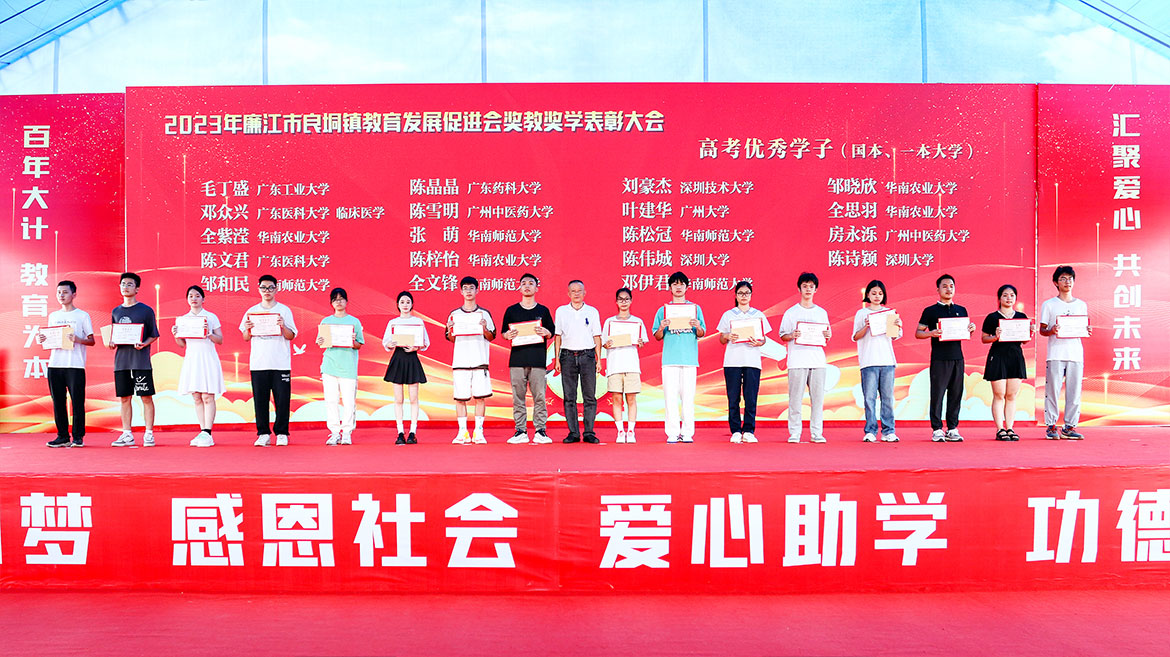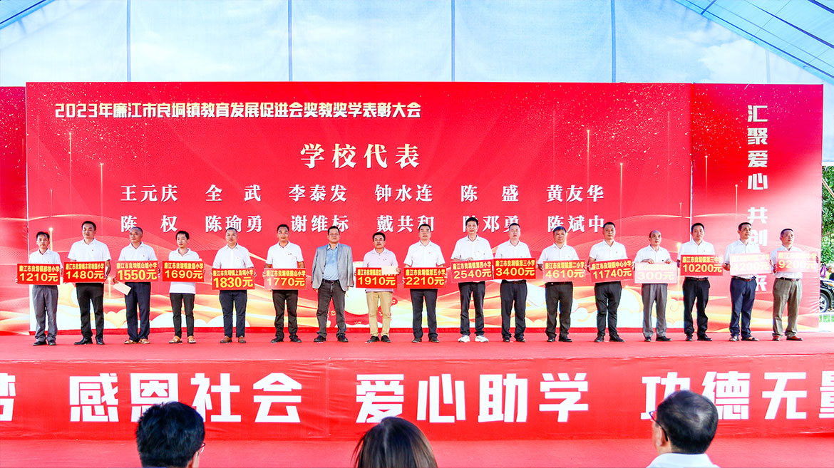 大會(huì)對(duì)良垌鎮(zhèn)教育發(fā)展促進(jìn)會(huì)會(huì)長、名譽(yù)會(huì)長、常務(wù)副會(huì)長、副會(huì)長、秘書長、監(jiān)事長、監(jiān)事等頒發(fā)牌匾,對(duì)76名優(yōu)秀大學(xué)生、96名優(yōu)秀中學(xué)生、407名優(yōu)秀小學(xué)生及198名優(yōu)秀教師等頒發(fā)獎(jiǎng)狀及獎(jiǎng)學(xué)金。
