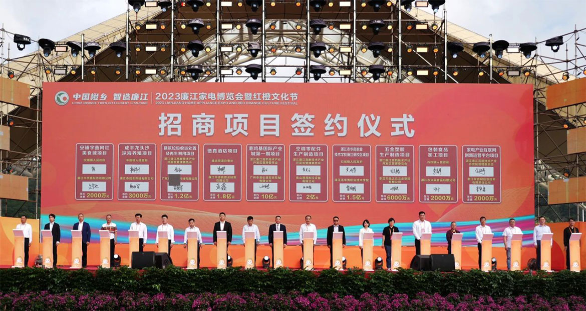 活動現(xiàn)場,最令人矚目的是商品交易項目簽約儀式、招商項目簽約儀式以及重點項目集中動工儀式。其中,家電經(jīng)銷商簽約共10個項目,簽約總金額約8.47億元;紅橙經(jīng)銷商簽約共10個項目,簽約總金額約1.31億元;招商項目簽約共20個項目,簽約總金額39.8億元;重點項目集中動工共20個項目,總投資31.93億元。據(jù)了解,近年來,廉江制定五個“10+”目標(biāo),實施“整縣推進(jìn)招商引資機制”,每個季度都有一批項目集中簽約、集中動工,并創(chuàng)下了從落筆簽約到落地動工用時僅76天的“廉江速度”,越來越多的企業(yè)選擇到廉江落戶發(fā)展。