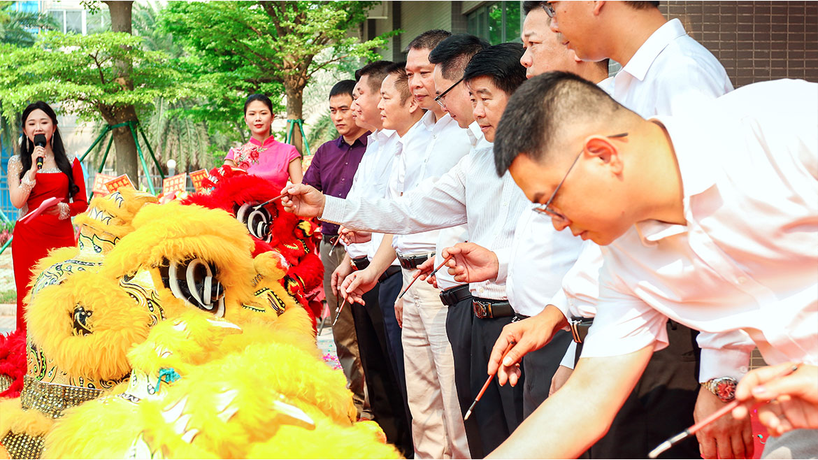 隨后,在場的領(lǐng)導(dǎo)們?yōu)榱埒櫥鶉H產(chǎn)業(yè)城籌建處揭牌。廉江港鴻基國際產(chǎn)業(yè)城的董事長、副董事長以及股東們一起為醒獅點(diǎn)睛。