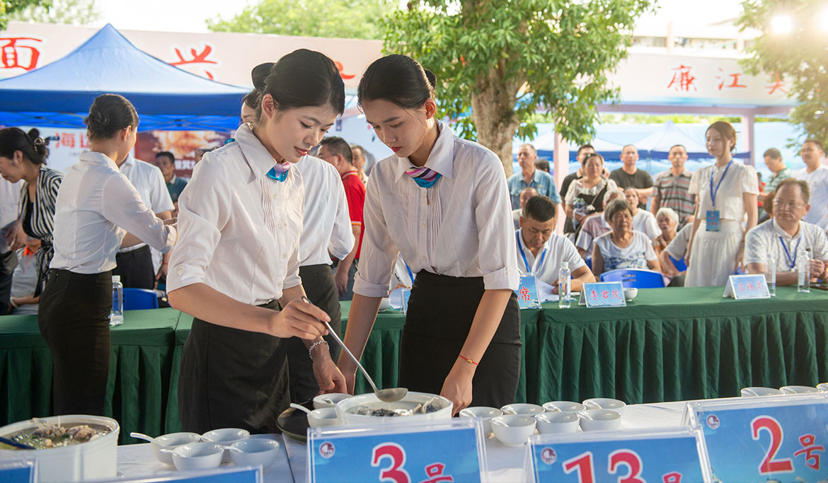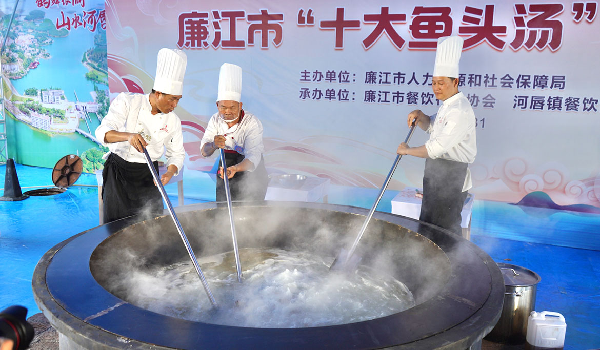 近年來,廉江市委市政府高度重視“魚頭湯”美食名片的打造,依托河唇鎮(zhèn)“鶴舞銀湖,山水河唇”鄉(xiāng)村振興連片連線特色示范帶的建設(shè),全新打造魚頭湯特色美食街這條集非遺美食、文化體驗、旅游融合為一體的“美食地標”街區(qū),推動“魚頭湯制作技藝”成功入選縣級非物質(zhì)文化遺產(chǎn)名錄。2021年,河唇魚頭湯在“廉江市十大美食”評比中勝出,成為廉江的一張美食“名片”。