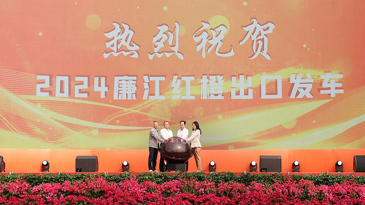 省統(tǒng)計(jì)局二級(jí)巡視員陸小環(huán),省農(nóng)業(yè)農(nóng)村廳總經(jīng)濟(jì)師、一級(jí)調(diào)研員鄭志雄,廉江市委書記陳恩才,市委副書記、市長柯俊,嶺南師范學(xué)院黨委副書記林曉敏,湛江市委副秘書長、市委保密委專職副主任凌漢,湛江市政府副秘書長冼戈,廣東省外語藝術(shù)職業(yè)學(xué)院黨委委員、副校長郝勇,湛江市農(nóng)業(yè)農(nóng)村局局長莫植貴,中國農(nóng)產(chǎn)品流通經(jīng)紀(jì)人協(xié)會(huì)副會(huì)長、秘書長李葭為2024廉江紅橙產(chǎn)業(yè)大會(huì)開幕推桿。