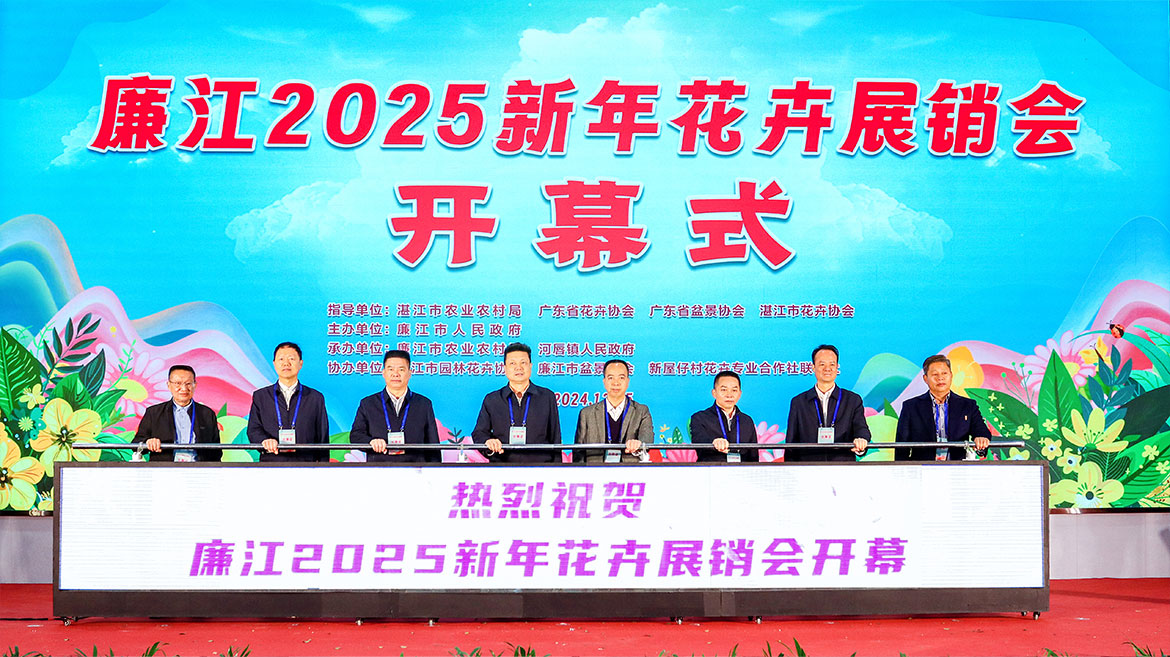 湛江市政協(xié)黨組書記、主席李多民,廣東省農(nóng)業(yè)農(nóng)村廳總經(jīng)濟(jì)師鄭志雄,廉江市委書記陳恩才,廉江市委副書記、市長(zhǎng)柯俊,廣東省林業(yè)局一級(jí)調(diào)研員魏冰,湛江市農(nóng)業(yè)農(nóng)村局黨組書記、局長(zhǎng)莫植貴,廣東省花卉協(xié)會(huì)會(huì)長(zhǎng)李小川,廣東省盆景協(xié)會(huì)會(huì)長(zhǎng)黃遠(yuǎn)穎為廉江2025新年花卉展銷會(huì)開幕共同推桿。
