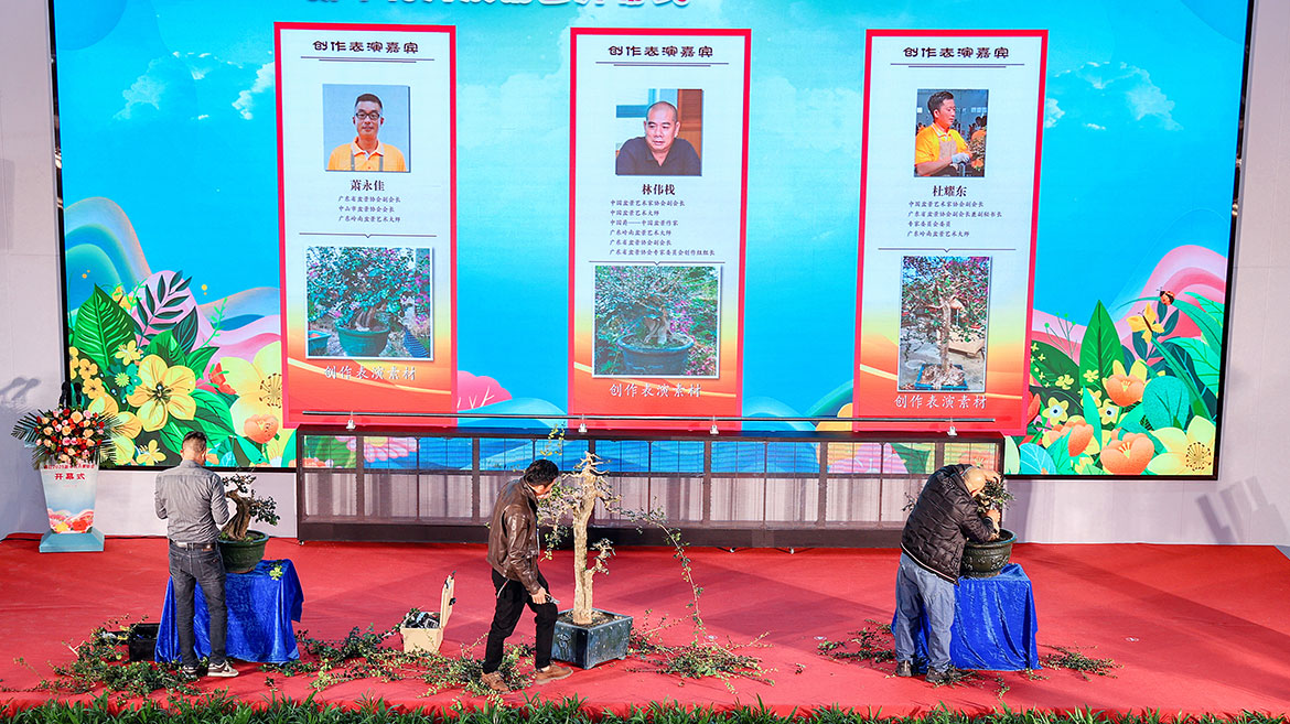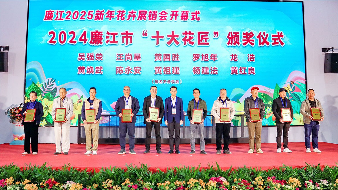 廉江2025新年花卉展銷會(huì)隨著一組花意盎然的歌舞表演拉開了帷幕。開幕式上,中國首位世界記憶冠軍吳天勝展示超凡記憶力,林偉棧、杜耀東、蕭永佳等中國盆景藝術(shù)大師進(jìn)行盆景創(chuàng)作技藝展示,贏得滿堂喝彩?,F(xiàn)場(chǎng)還舉行2024廉江市“十大花匠”頒獎(jiǎng)儀式,吳強(qiáng)榮等花匠上臺(tái)接受牌匾。