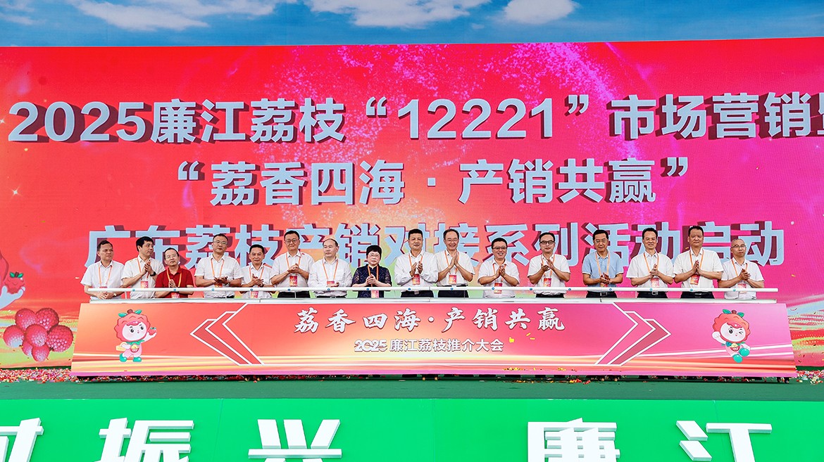 活動(dòng)由省農(nóng)業(yè)農(nóng)村廳、省商務(wù)廳指導(dǎo),廉江市政府、湛江市農(nóng)業(yè)農(nóng)村局、湛江市商務(wù)局聯(lián)合主辦。湛江市政協(xié)主席李多民,副市長(zhǎng)何嘉旻,廣東省商務(wù)廳一級(jí)巡視員殷煥明,嶺南師范學(xué)院黨委副書記、校長(zhǎng)陽(yáng)愛民,廣東省外語藝術(shù)職業(yè)學(xué)院黨委書記馬栩生,廣東省委網(wǎng)信辦二級(jí)巡視員于萬東,廣東省統(tǒng)計(jì)局二級(jí)巡視員李兩聰,廣東省農(nóng)業(yè)農(nóng)村廳總農(nóng)藝師蔡立,湛江市委網(wǎng)信辦主任、市互聯(lián)網(wǎng)行業(yè)黨委書記汪良波,湛江市農(nóng)業(yè)農(nóng)村局局長(zhǎng)莫植貴,湛江市商務(wù)局局長(zhǎng)張佩,湛江市統(tǒng)計(jì)局局長(zhǎng)甘強(qiáng),湛江市供銷社主任葉文新,國(guó)家統(tǒng)計(jì)局湛江調(diào)查隊(duì)隊(duì)長(zhǎng)、一級(jí)調(diào)研員許喬峰,廉江市委書記曾平治,市委副書記、市長(zhǎng)柯俊,市人大常委會(huì)黨組書記、主任陳煒飛等領(lǐng)導(dǎo)出席活動(dòng),并共同推桿啟動(dòng)2025廉江荔枝“12221”市場(chǎng)營(yíng)銷暨“荔香四?!ぎa(chǎn)銷共贏”廣東荔枝產(chǎn)銷對(duì)接系列活動(dòng)。