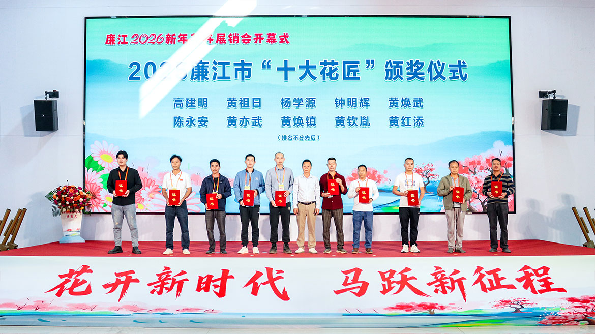 現(xiàn)場(chǎng)還舉行了物流助農(nóng)簽約儀式,廣東生動(dòng)鮮供應(yīng)鏈管理有限公司與相關(guān)協(xié)會(huì)、合作社簽署合作協(xié)議,助力打通產(chǎn)銷對(duì)接堵點(diǎn)。期間,主辦方為2025年度廉江市“十大花匠”頒發(fā)證書(shū),表彰他們?cè)诨ɑ芊N植技藝傳承與產(chǎn)業(yè)提質(zhì)升級(jí)中的卓越貢獻(xiàn)。